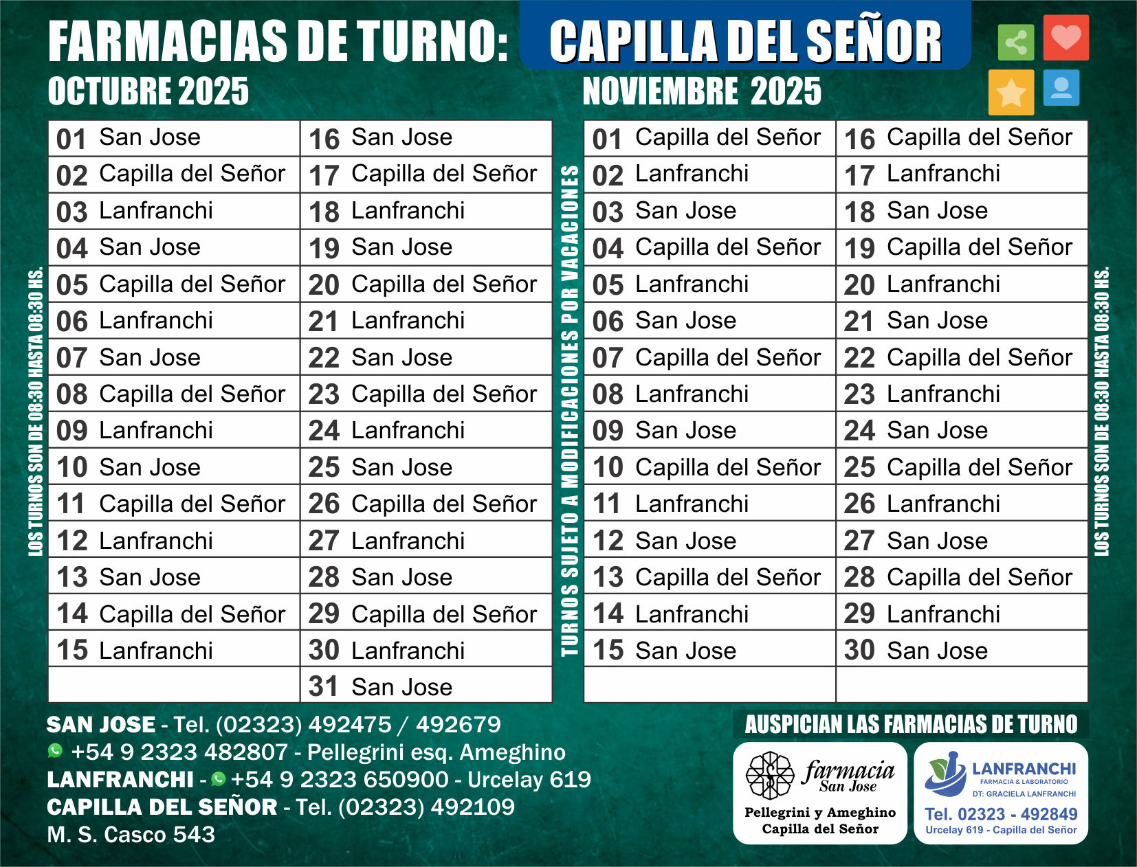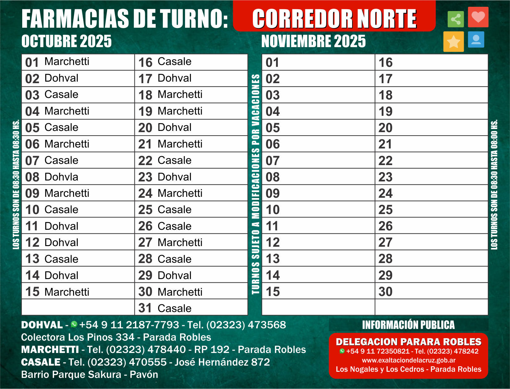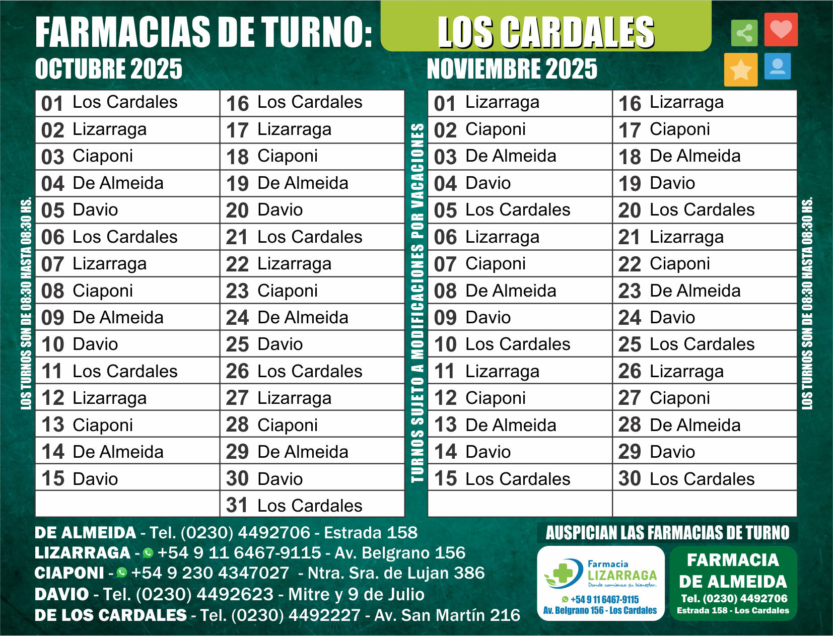 IMPORTANTE: LOS TURNOS COMIENZAN A LAS 08:00 Y TERMINAN A LAS 08:00 DEL DIA SIGUIENTE.