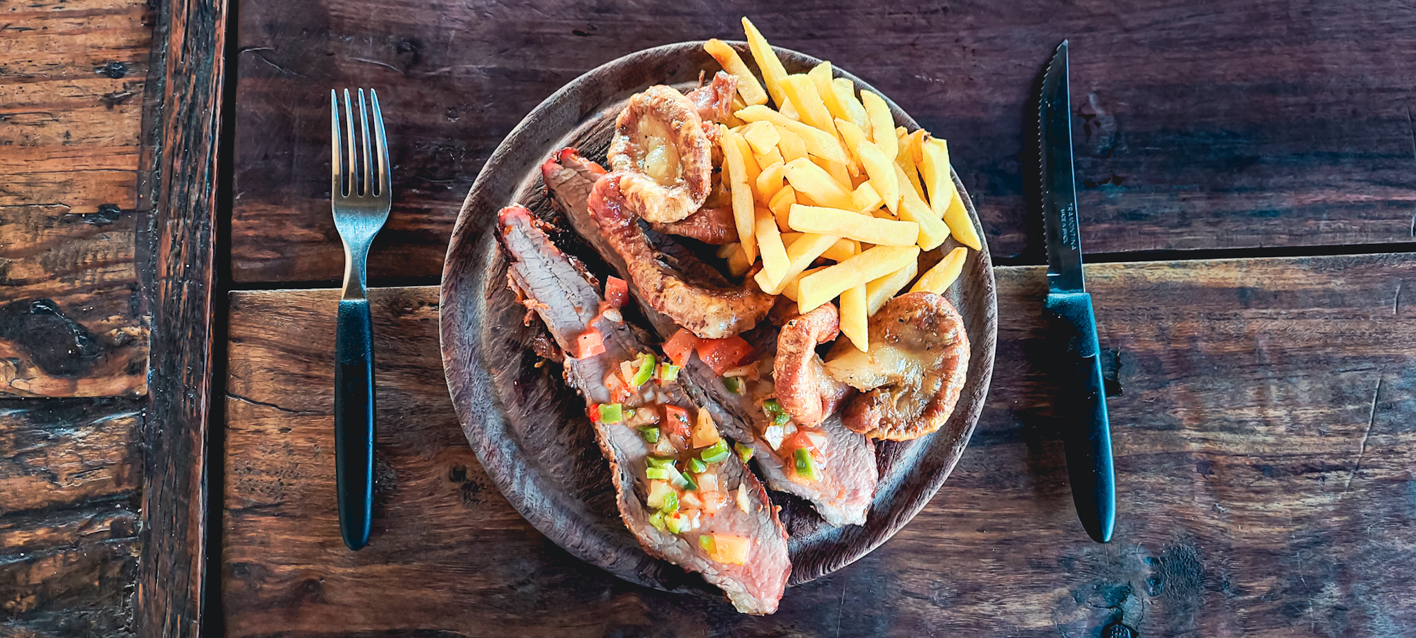 Donde el entorno rural y turistico se conjugan para degustar los clasicos argentinos... Chinchulines, vacio, costillas, bife de chorizo, matambre, cerdo, pollo, morcilla, papas fritas, ensaladas, empanadas de carne fritas, postres caseros budin de pan y flan con dulce de leche, bebidas coca cola, sprite, aguas saborizadas, vinos de la casa, fernet, campari y la imperdible cerveza artesanal en sus variedades de Oktober, La Rubia, Porter (Negra), IPA y APA.